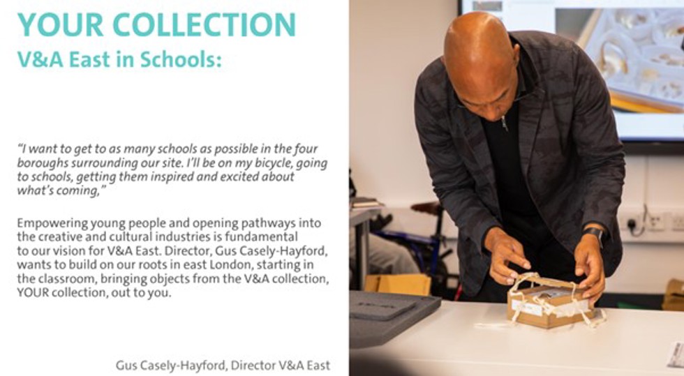 V&A East Director, Gus Casely-Hayford spoke to Y11 Art and Y11 & Y10 DT, Drama & Dance students about the opening of the V&A East and the V&A East Storehouse in Spring 2025 explaining the history of the museum and the opportunities the new buildings in Stratford will open up to students, their families and the school. Gus spoke about the role students have in shaping the future through their involvement in the Creative Industries.