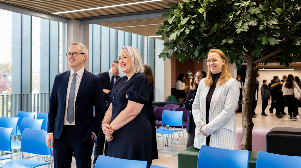 Over 60 young people from Knowsley took part in a backstage tour, talks and workshops at the innovative new performance space, Shakespeare North Playhouse in Prescot. They were joined by Arts Minister Lord Parkinson of Whitley Bay. Image © Lucy Hunter.
